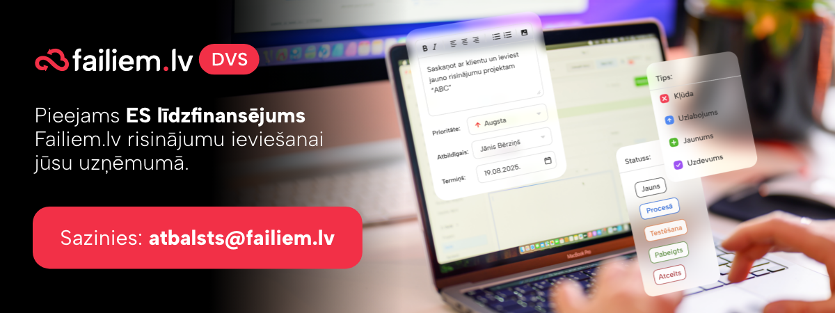 Ar vairāk nekā 2 miljoniem lietotāju un 15+ gadu pieredzi, Failiem.lv ir izpelnījies uzņēmumu, profesionāļu un privātpersonu uzticību visā pasaulē. Personīga pieeja klientu vajadzībām, ērta lietojamība un spēcīgi tehniskie risinājumi padara mūs par uzticamu izvēli datu pārvaldīšanas jomā.